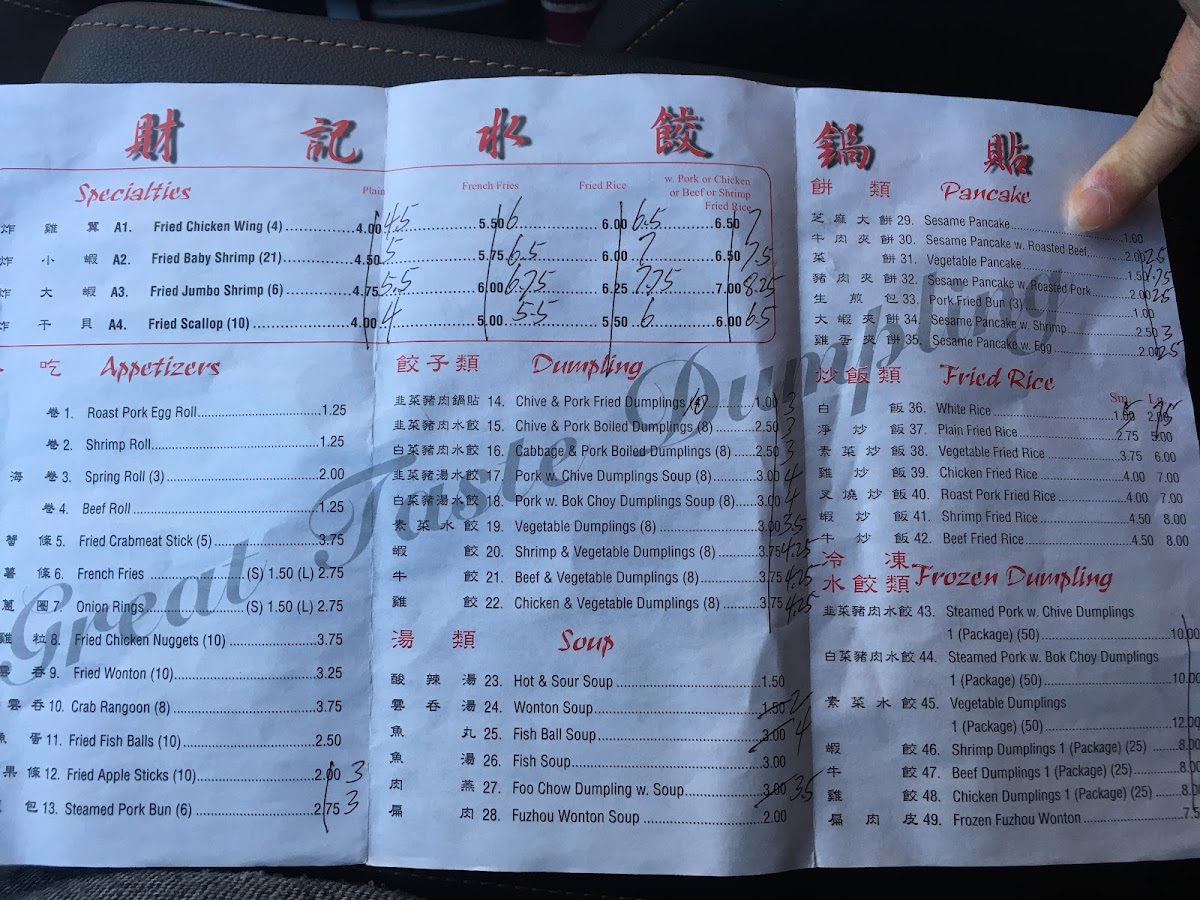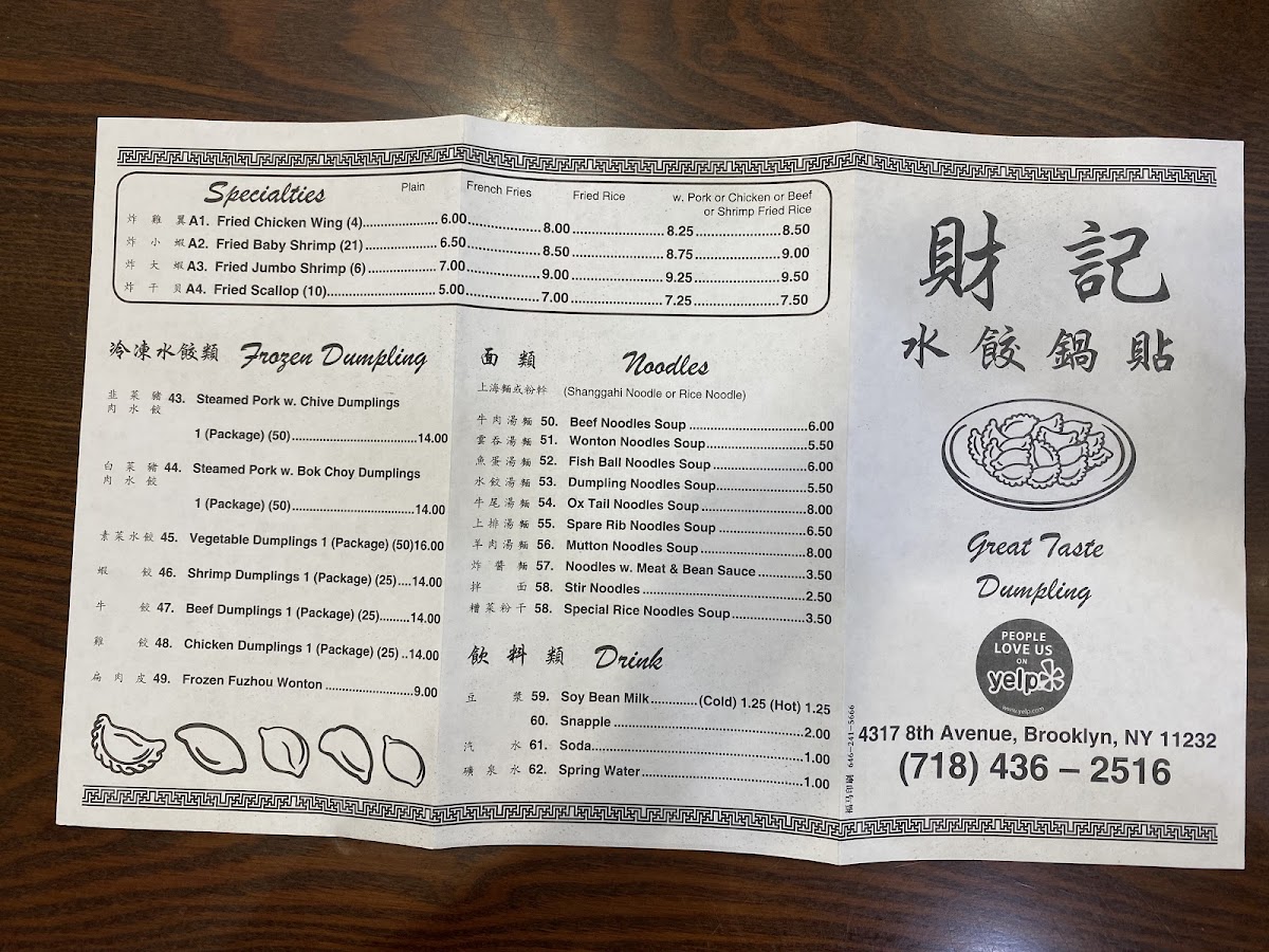 Great Taste Dumpling Menu