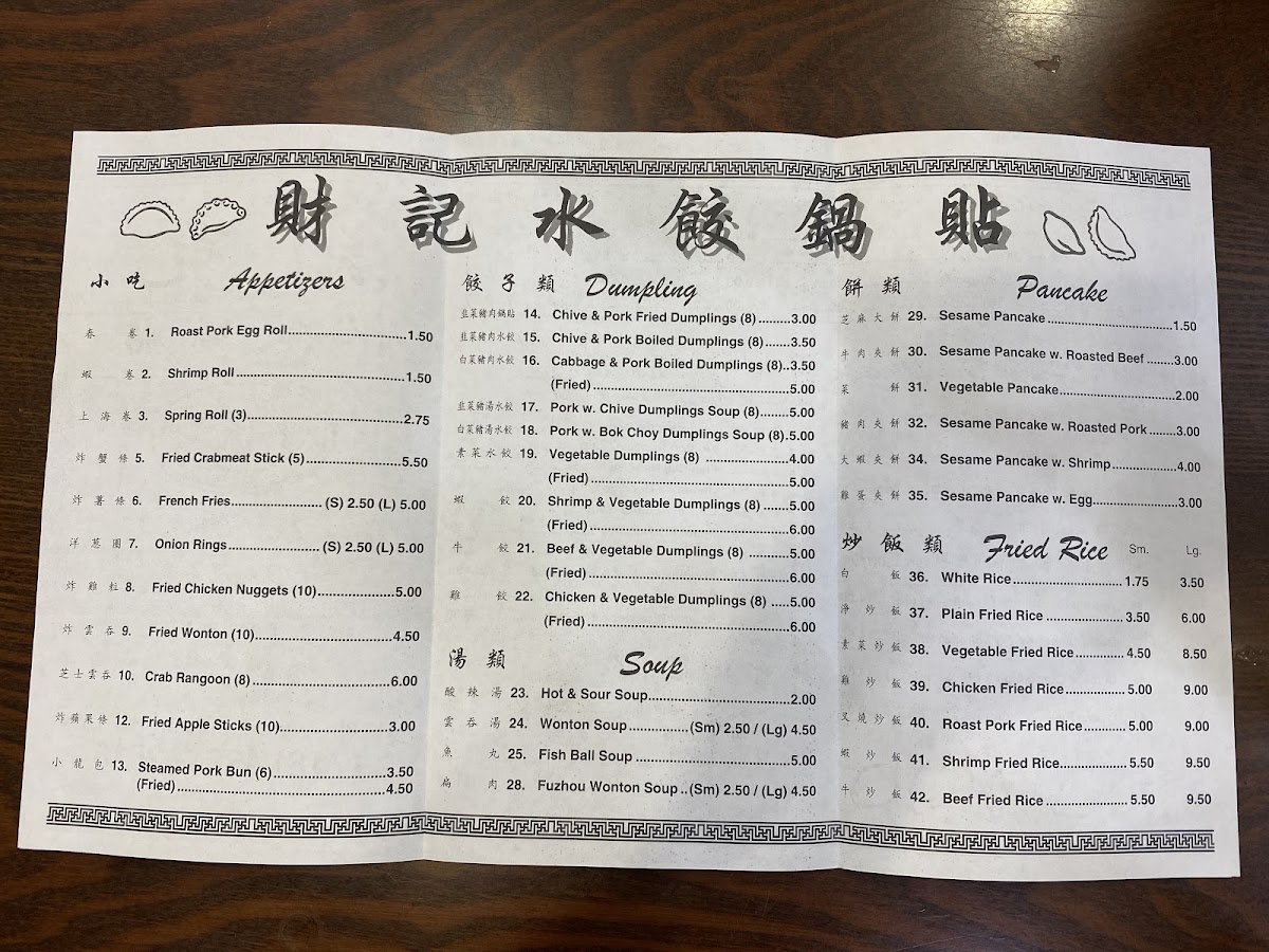 Guests can expect thoughtfully prepared options like fried dumplings with a crispy exterior, or boiled dumplings served in warming soups. Alongside these favorites, you'll find staples such as shrimp fried rice and dishes featuring noodles with savory black bean sauce. The menu also includes other approachable items like pierogi and fish balls, adding a bit of variety to the core offerings.